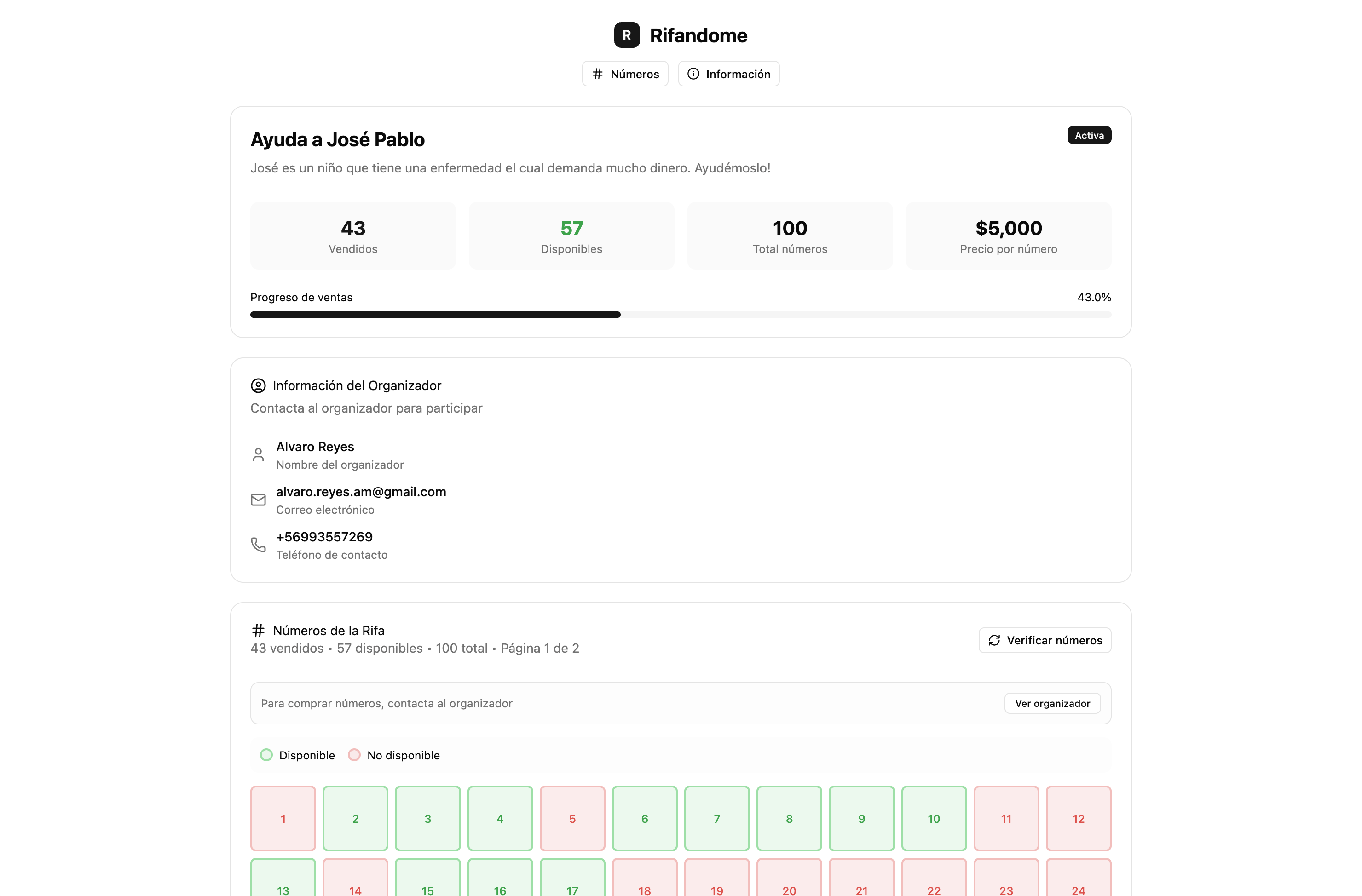 Hasta 1,000 números por rifa