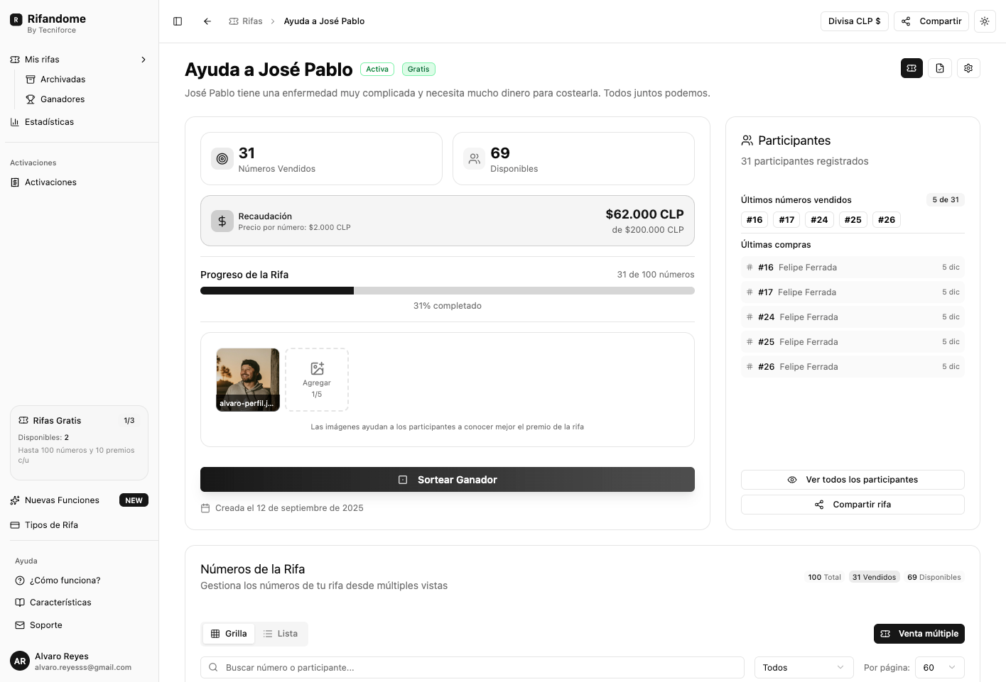 Gestiona participantes, administra rifas completas y realiza sorteos automáticos con total transparencia.