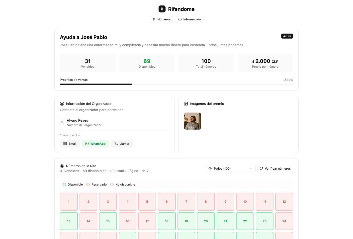 Entrega un enlace público donde tus participantes verán ticket vendidos, disponibles, ganadores y toda la información en tiempo real.